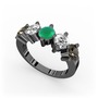 Dumanlı kuvars, pırlanta ve kök zümrüt 925 ayar siyah rodyum kaplama gümüş yüzük (1.32 karat)