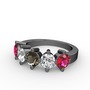 Dumanlı kuvars, pırlanta ve rodolit garnet 925 ayar siyah rodyum kaplama gümüş yüzük (1.32 karat)