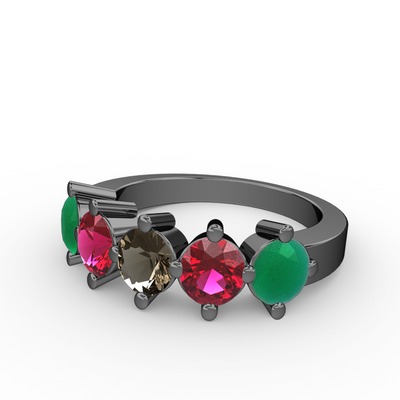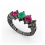 Dumanlı kuvars, rodolit garnet ve kök zümrüt 925 ayar siyah rodyum kaplama gümüş yüzük