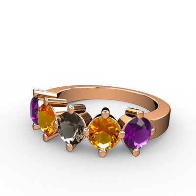 Dumanlı kuvars, sitrin ve ametist 925 ayar rose altın kaplama gümüş yüzük