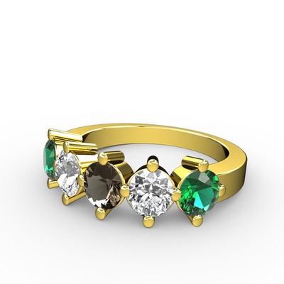 Dumanlı kuvars, swarovski ve yeşil kuvars 925 ayar altın kaplama gümüş yüzük