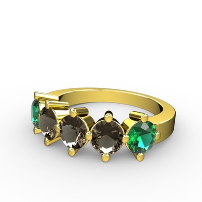 Dumanlı kuvars ve yeşil kuvars 925 ayar altın kaplama gümüş yüzük