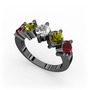Garnet, peridot ve beyaz zirkon 925 ayar siyah rodyum kaplama gümüş yüzük