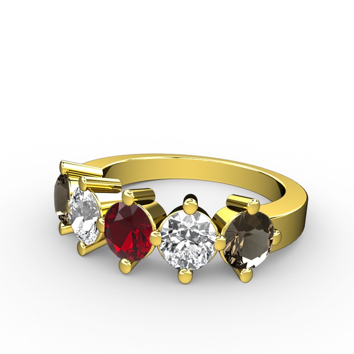 Garnet, swarovski ve dumanlı kuvars 8 ayar altın yüzük
