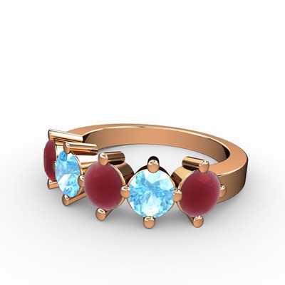 Kök yakut ve akuamarin 14 ayar rose altın yüzük