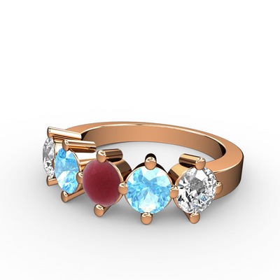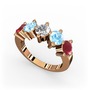 Kök yakut, akuamarin ve beyaz zirkon 925 ayar rose altın kaplama gümüş yüzük