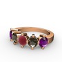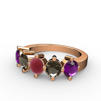 Kök yakut, dumanlı kuvars ve ametist 925 ayar rose altın kaplama gümüş yüzük