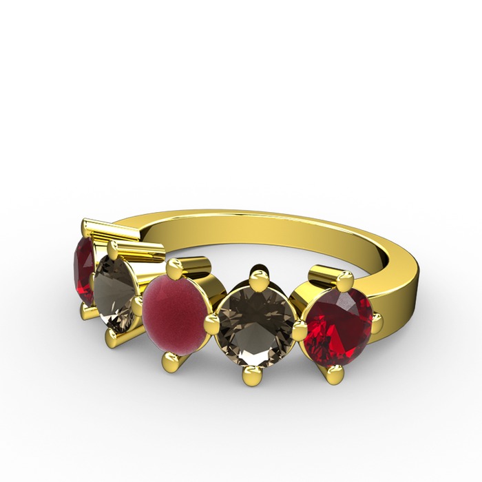 Kök yakut, dumanlı kuvars ve garnet 8 ayar altın yüzük