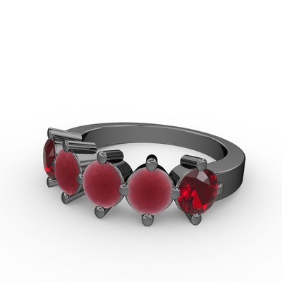 Kök yakut ve garnet 925 ayar siyah rodyum kaplama gümüş yüzük