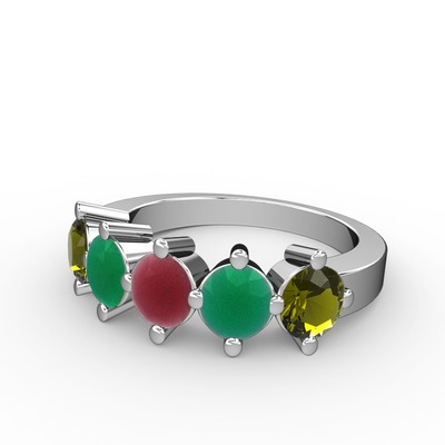 Kök yakut, kök zümrüt ve peridot 18 ayar beyaz altın yüzük