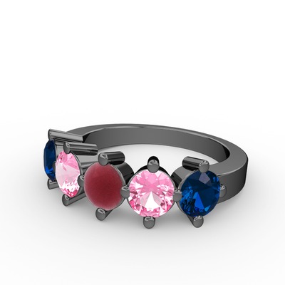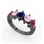 Kök yakut, pembe kuvars ve lab safir 925 ayar siyah rodyum kaplama gümüş yüzük