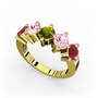 Kök yakut, pembe kuvars ve peridot 925 ayar altın kaplama gümüş yüzük
