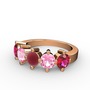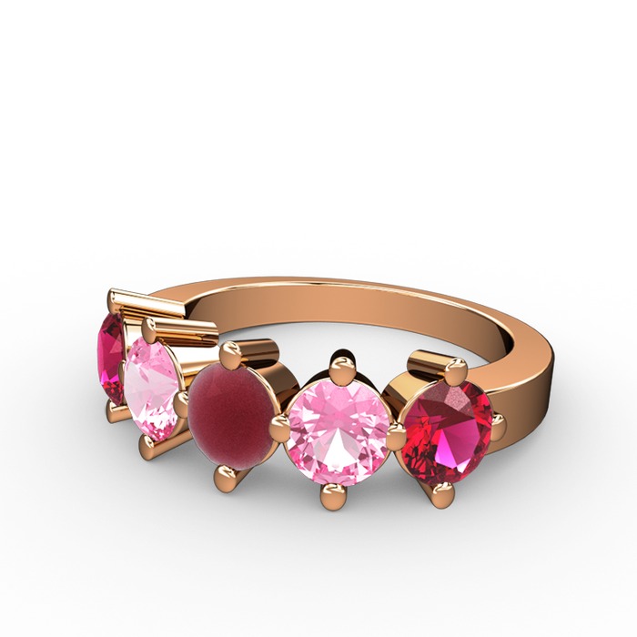 Kök yakut, pembe kuvars ve rodolit garnet 14 ayar rose altın yüzük