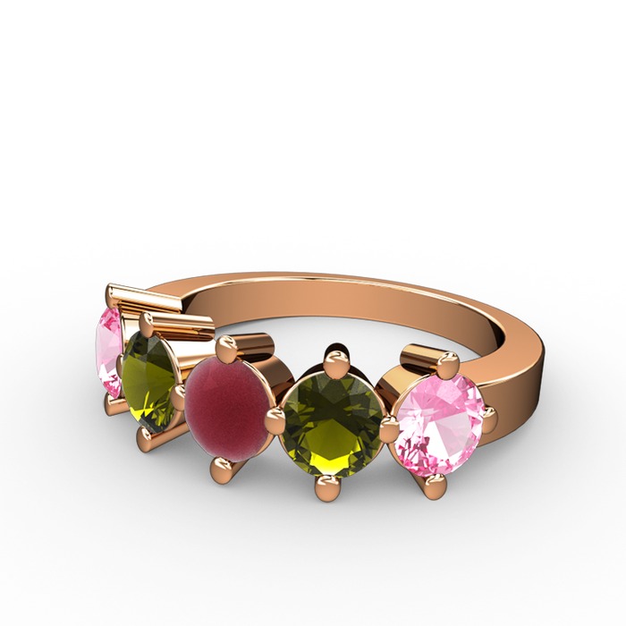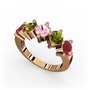 Kök yakut, peridot ve pembe kuvars 925 ayar rose altın kaplama gümüş yüzük