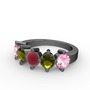 Kök yakut, peridot ve pembe kuvars 925 ayar siyah rodyum kaplama gümüş yüzük