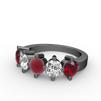 Kök yakut, pırlanta ve garnet 925 ayar siyah rodyum kaplama gümüş yüzük (1.32 karat)
