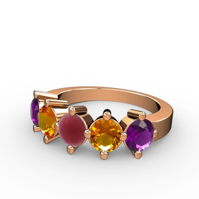 Kök yakut, sitrin ve ametist 14 ayar rose altın yüzük