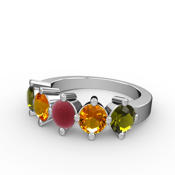Kök yakut, sitrin ve peridot 18 ayar beyaz altın yüzük