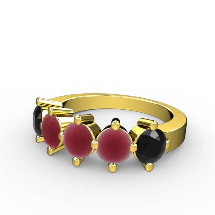 Kök yakut ve siyah zirkon 14 ayar altın yüzük