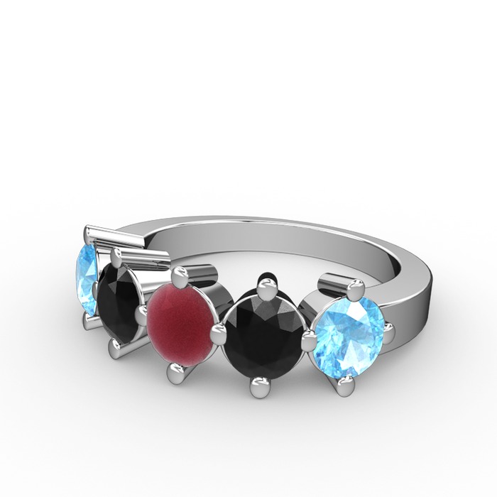 Kök yakut, siyah zirkon ve akuamarin 8 ayar beyaz altın yüzük
