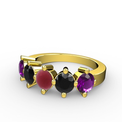 Kök yakut, siyah zirkon ve ametist 14 ayar altın yüzük
