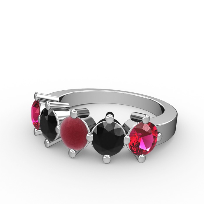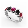 Kök yakut, siyah zirkon ve rodolit garnet 8 ayar beyaz altın yüzük