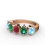 Kök yakut, yeşil kuvars ve akuamarin 925 ayar rose altın kaplama gümüş yüzük