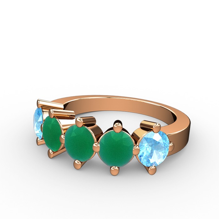 Kök zümrüt ve akuamarin 8 ayar rose altın yüzük