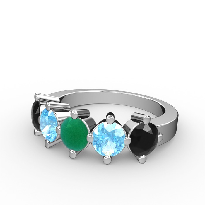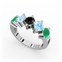 Kök zümrüt, akuamarin ve siyah zirkon 14 ayar beyaz altın yüzük