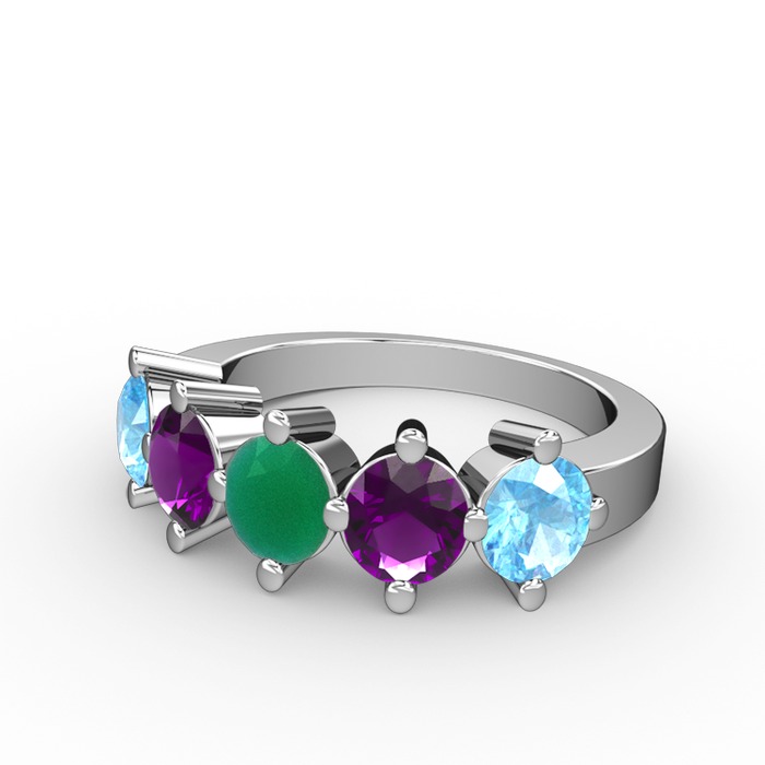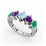 Kök zümrüt, ametist ve akuamarin 8 ayar beyaz altın yüzük