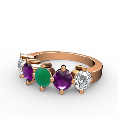 Kök zümrüt, ametist ve beyaz zirkon 14 ayar rose altın yüzük