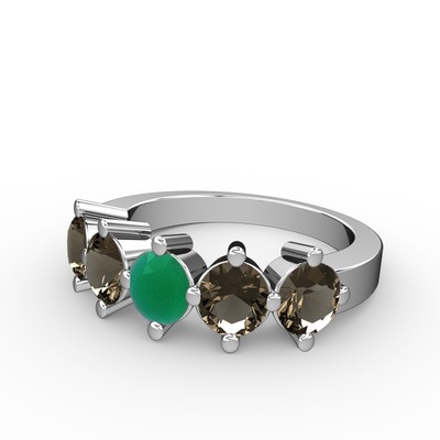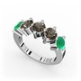 Kök zümrüt ve dumanlı kuvars 8 ayar beyaz altın yüzük