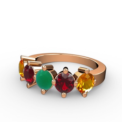 Kök zümrüt, garnet ve sitrin 8 ayar rose altın yüzük