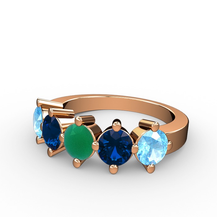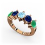 Kök zümrüt, lab safir ve akuamarin 18 ayar rose altın yüzük