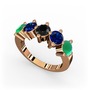 Kök zümrüt, lab safir ve siyah zirkon 14 ayar rose altın yüzük