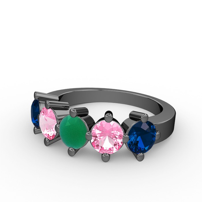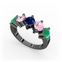 Kök zümrüt, pembe kuvars ve lab safir 925 ayar siyah rodyum kaplama gümüş yüzük