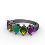 Kök zümrüt, peridot ve ametist 925 ayar siyah rodyum kaplama gümüş yüzük
