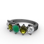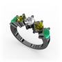 Kök zümrüt, peridot ve beyaz zirkon 925 ayar siyah rodyum kaplama gümüş yüzük