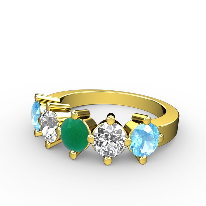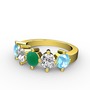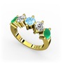 Kök zümrüt, pırlanta ve akuamarin 14 ayar altın yüzük (1.32 karat)