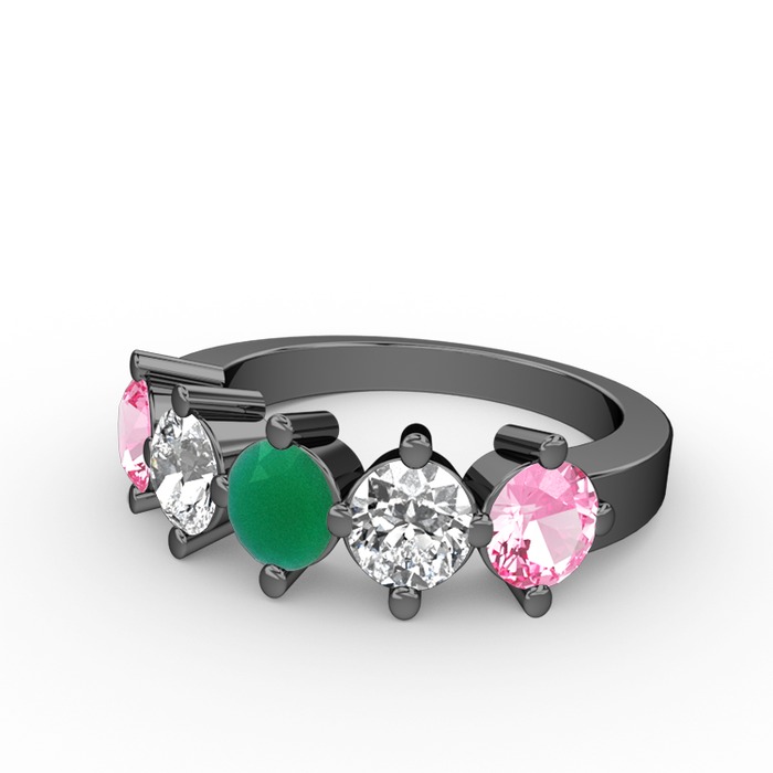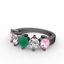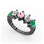 Kök zümrüt, pırlanta ve pembe kuvars 925 ayar siyah rodyum kaplama gümüş yüzük (1.32 karat)