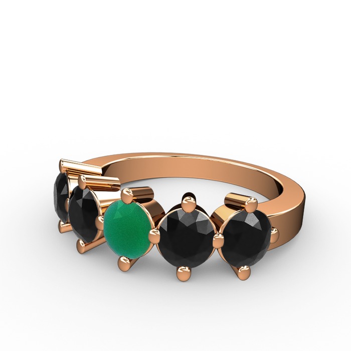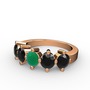 Kök zümrüt ve siyah zirkon 14 ayar rose altın yüzük