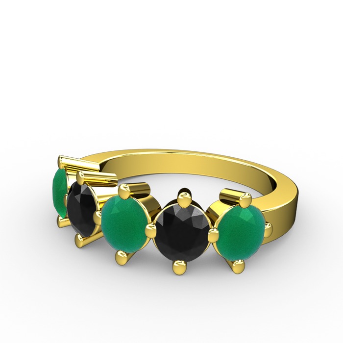 Kök zümrüt ve siyah zirkon 18 ayar altın yüzük