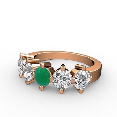 Kök zümrüt ve swarovski 14 ayar rose altın yüzük