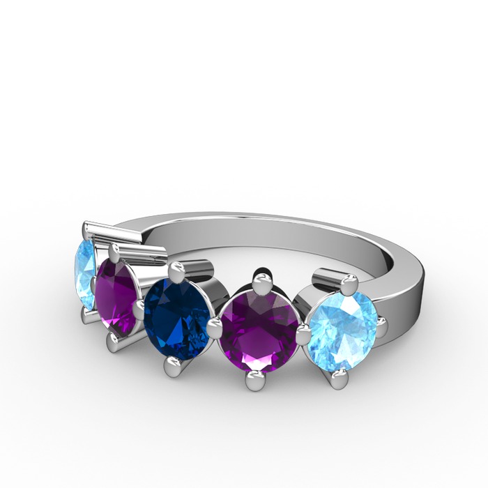 Lab safir, ametist ve akuamarin 14 ayar beyaz altın yüzük
