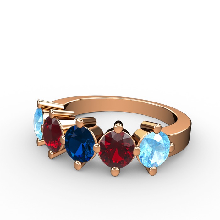 Lab safir, garnet ve akuamarin 925 ayar rose altın kaplama gümüş yüzük