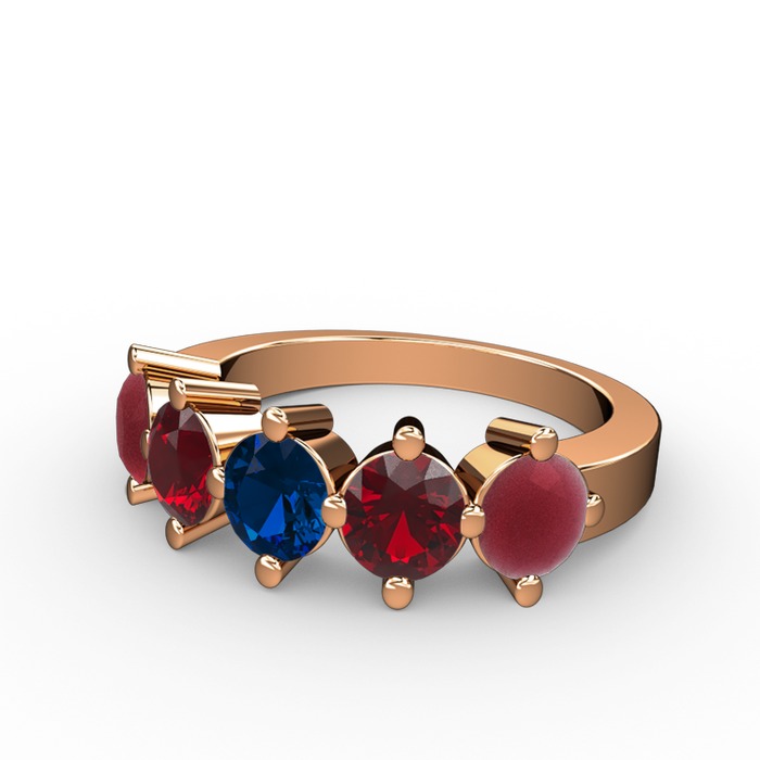 Lab safir, garnet ve kök yakut 14 ayar rose altın yüzük