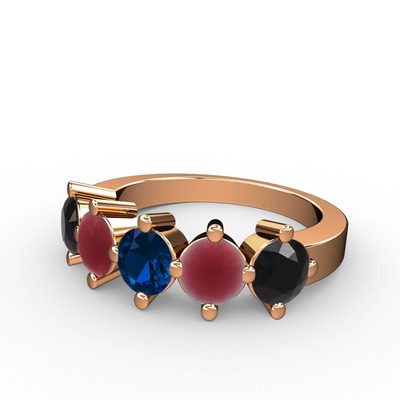 Lab safir, kök yakut ve siyah zirkon 14 ayar rose altın yüzük