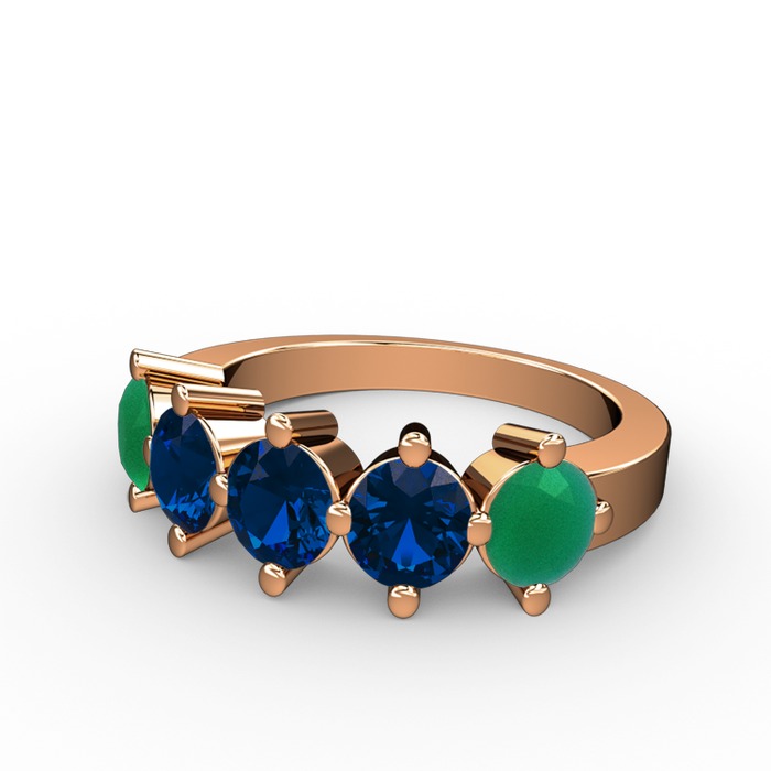 Lab safir ve kök zümrüt 8 ayar rose altın yüzük