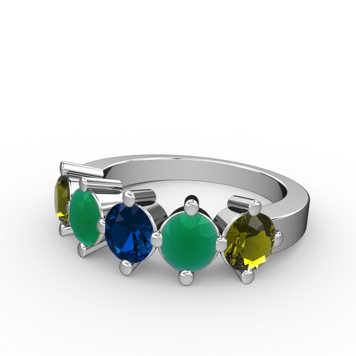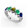 Lab safir, kök zümrüt ve peridot 8 ayar beyaz altın yüzük
