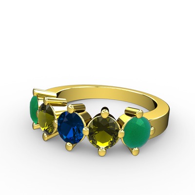Lab safir, peridot ve kök zümrüt 8 ayar altın yüzük